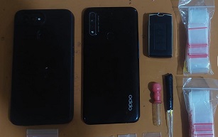 Setelah dibuntuti sampai sebuah kontrakan di Gang Jambul, Kampung Alas Tua, petugas memastikan keduanya membawa sabu. Saat dilakukan penggeledahan, ditemukan sebuah dompet putih berisi: satu klip besar sabu; 4 klip kecil sabu; dua handphone; satu pipet.
